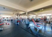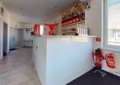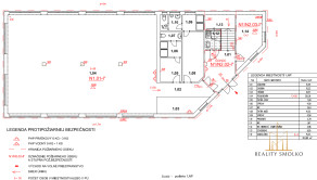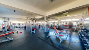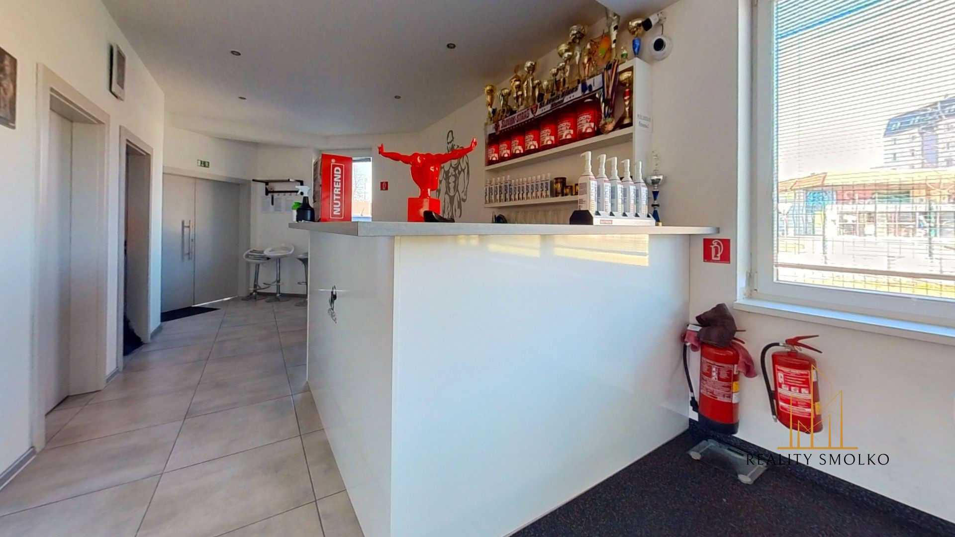 Legenda miestností: vstupná chodba, posilňovňa, kancelária, malý sklad, predajňa, šatne, recepcia a oddelené sociálne zariadenia.