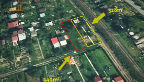 Pozemok č.2: výmera 328 m² (rozmery: šírka 10 m x dĺžka 33 m - s chatkou a studňou)