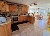 Kuchyňa Vás očarí masívnou kuchynskou linkou v tvare písmena U so zabudovanými spotrebičmi - rúra, plynová varná doska, digestor, umývačka riadu.