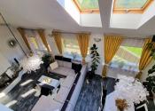 Reality Smolko - realitná kancelária Vám EXKLUZÍVNE ponúka na predaj nádherný, luxusný a priestranný rodinný dom s veľkým pozemkom, dvojitou garážou, altánkom s krbom aj ručne vyrobenou saunou.