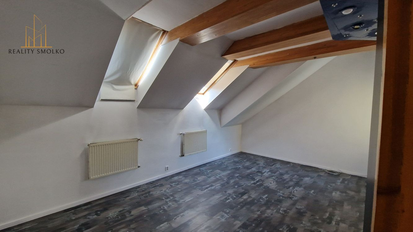 Vrchné poschodie: 3 priestranné izby, chodba , galéria s veľkým úložným priestorom, ktorý sa dá využiť ako ďalšia miestnosť, vstup na balkón samostatne, kúpeľňa so sprchovacím kútom a vaňou, samostatné WC.